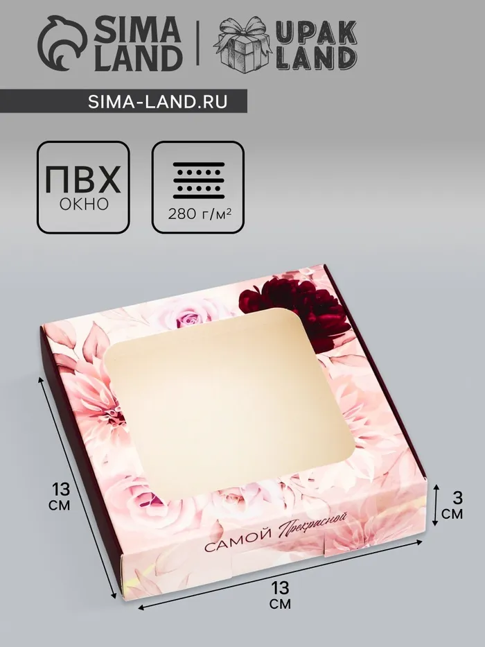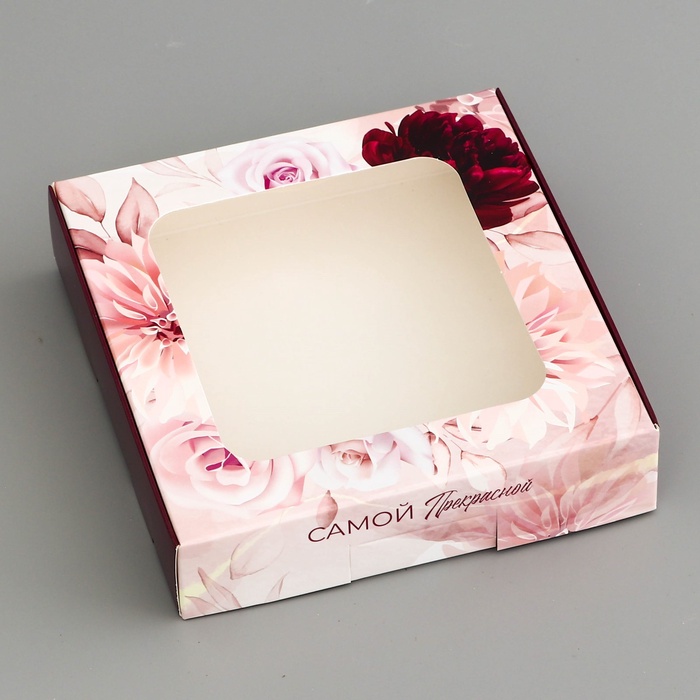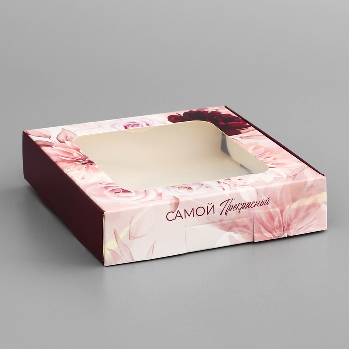 Коробка подарочная сборная с окном, упаковка, «Самой прекрасной», 13×13×3 см — Характеристики