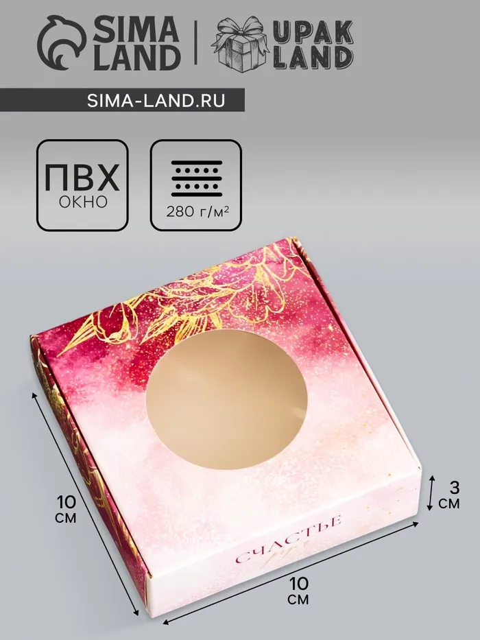 Коробка подарочная сборная с окном, упаковка, «Счастливых моментов», 10×10×3 см — Характеристики