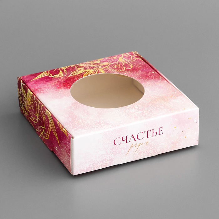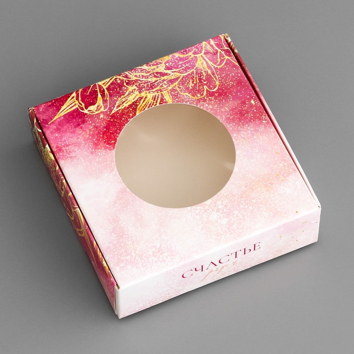 Коробка подарочная сборная с окном, упаковка, «Счастливых моментов», 10×10×3 см