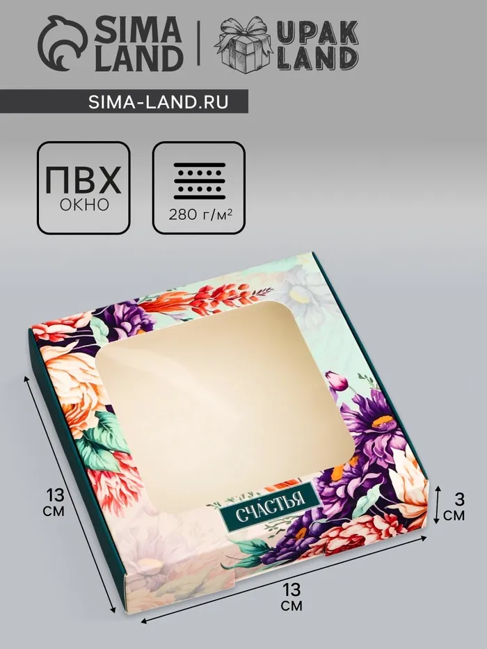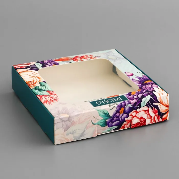 Коробка подарочная сборная с окном, упаковка, «Цветочки», 13×13×3 см — Характеристики