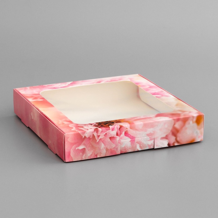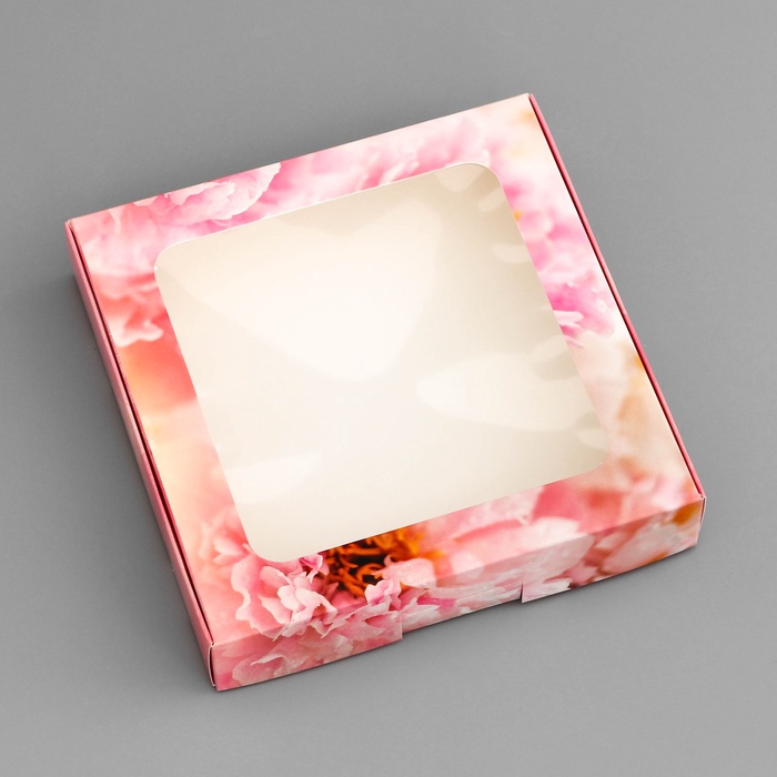Коробка подарочная сборная с окном, упаковка, «Цветоки», 16×16×3 см