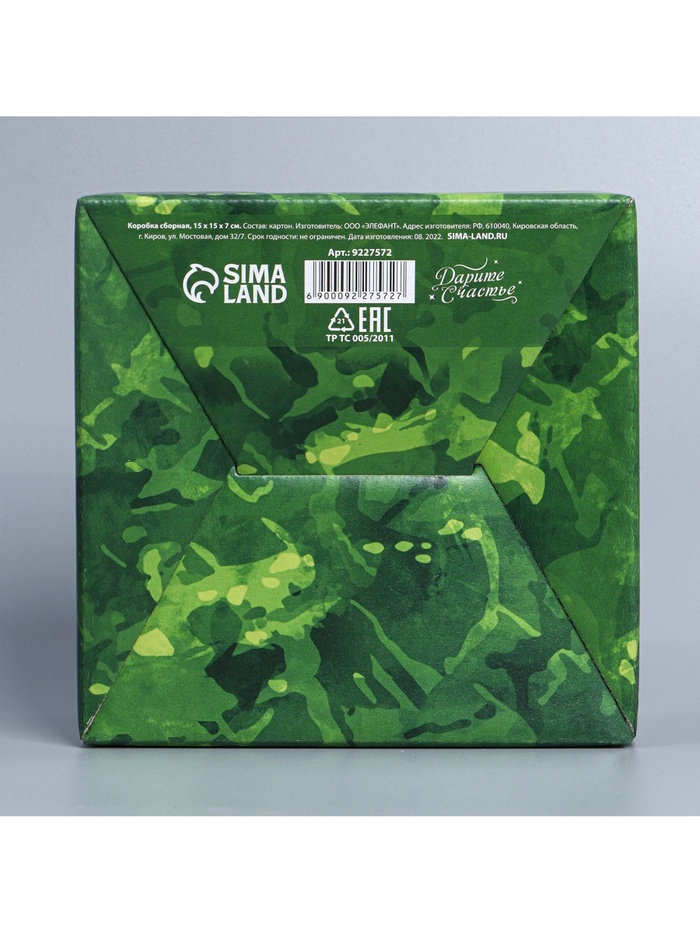 Коробка подарочная сборная, упаковка, «23 февраля», 15×15×7 см — Характеристики