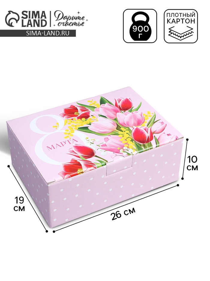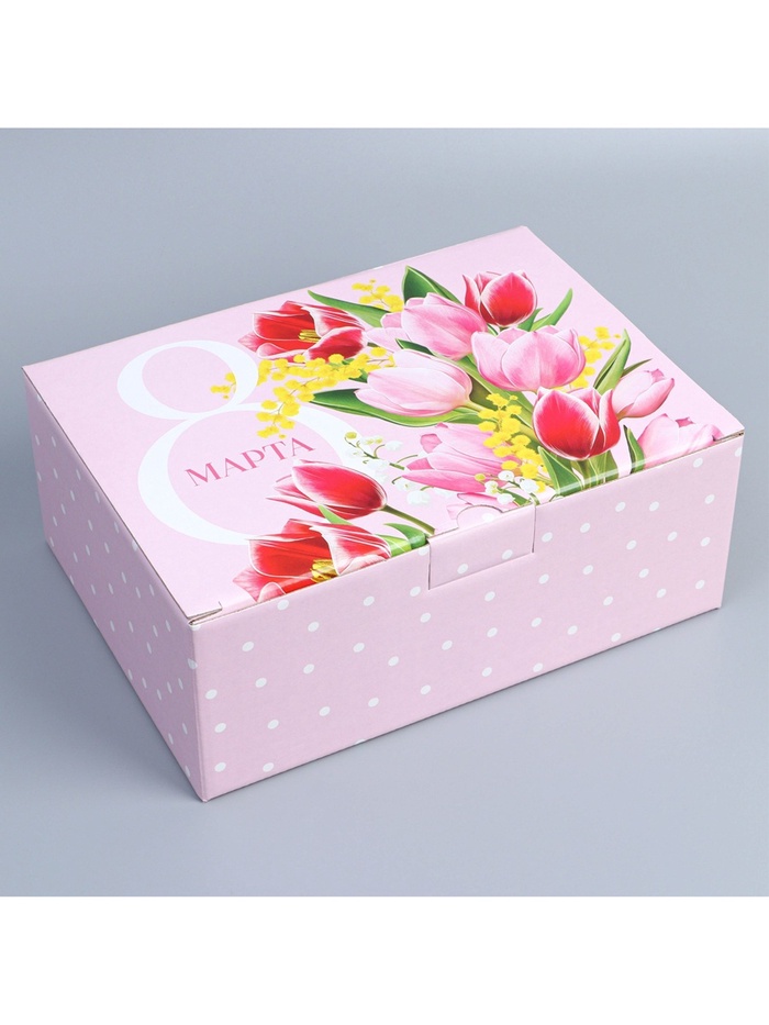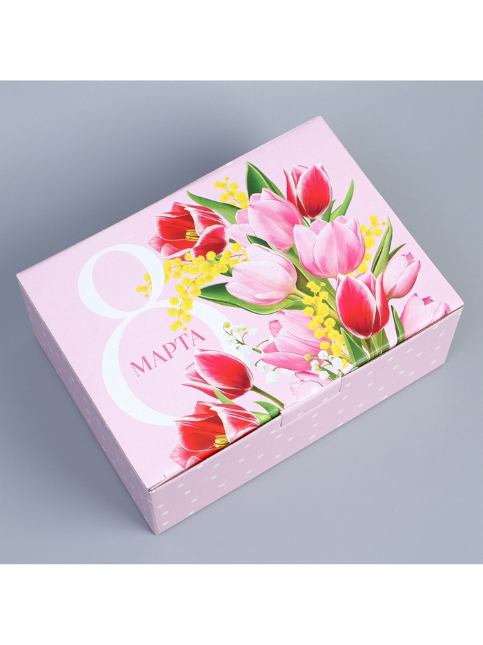 Коробка подарочная сборная, упаковка, «8 марта», 26 х 19 х 10 см — Характеристики