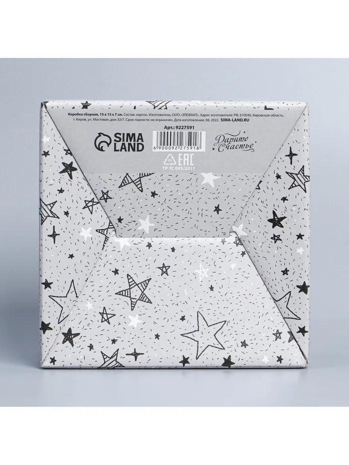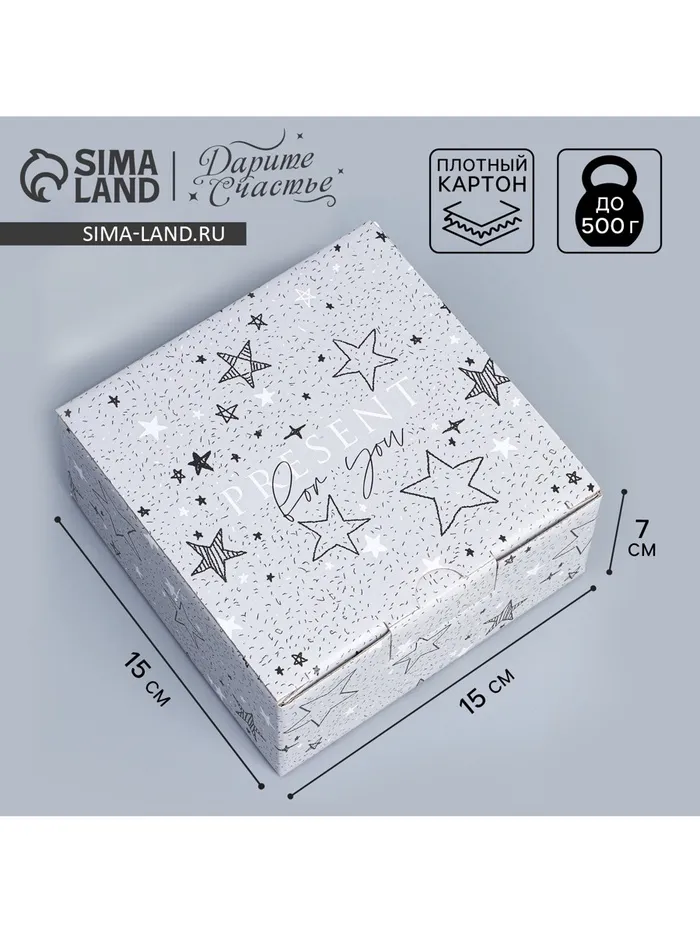 Коробка подарочная сборная, упаковка, «Звёзды», 15 х 15 х 7 см — Характеристики