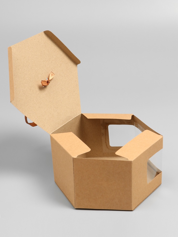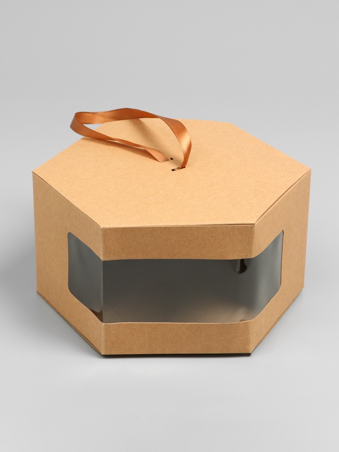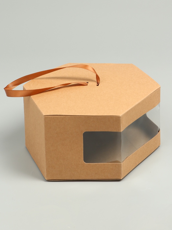 Коробка подарочная шестигранная, с окном, крафтовая, 10×30×17 см — Характеристики