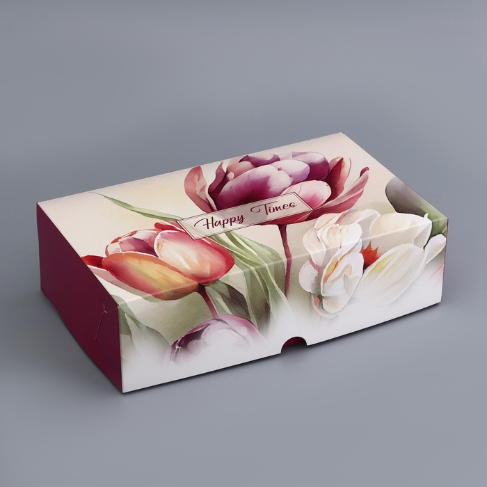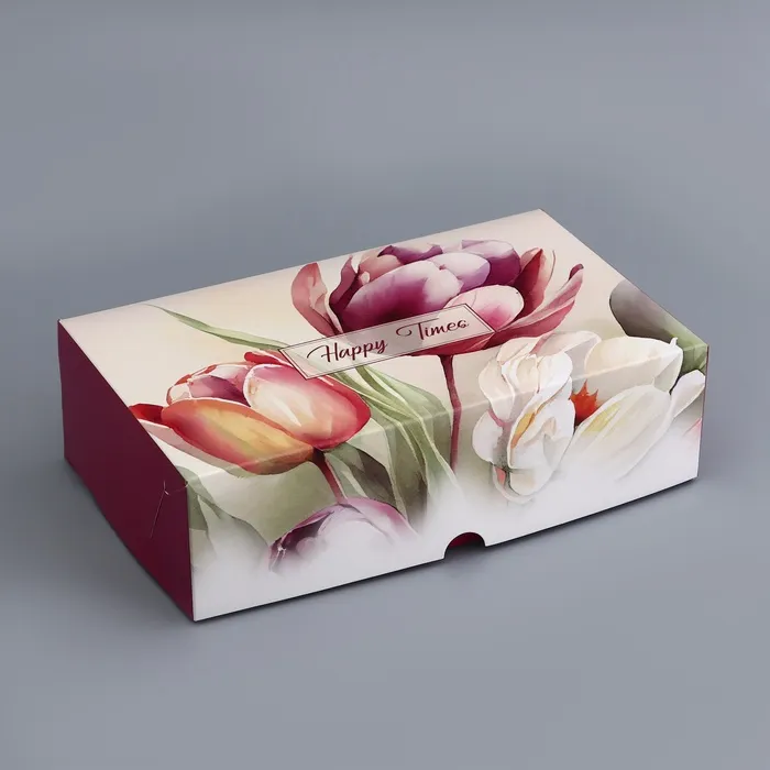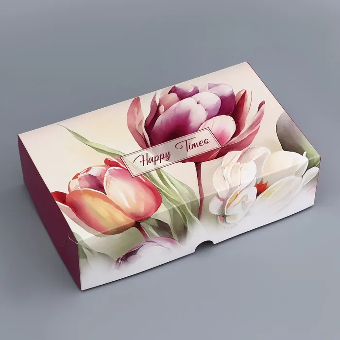 Коробка подарочная складная без окна, упаковка, «Тюльпаны», 25×15×7 см — Характеристики