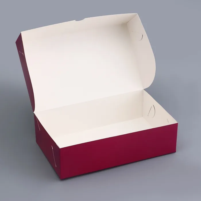 - Размер коробки составляет 25х15х7 см, что позволяет разместить внутри разнообразные кондитерские изделия: от небольших шоколадок до крупных конфет и даже пирожных.