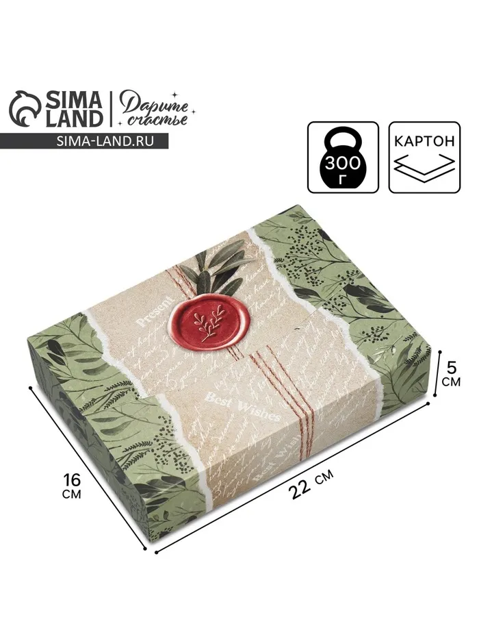 Коробка подарочная складная конверт, упаковка, «Эко», 22 х 16 х 5 см — Характеристики