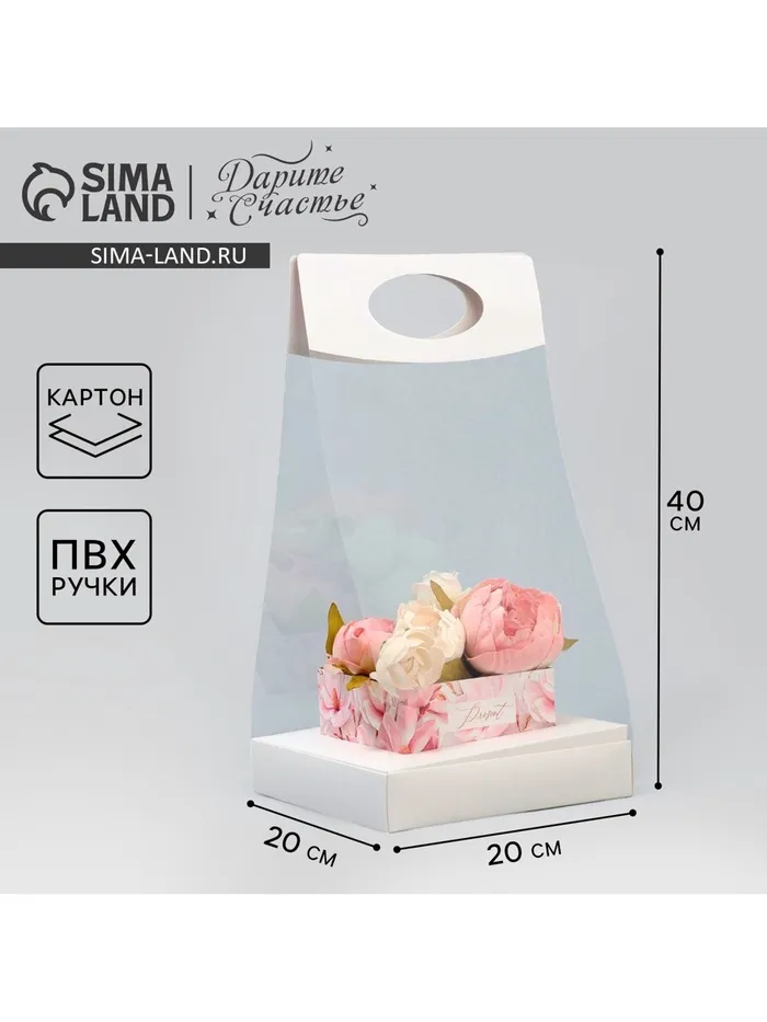 Коробка подарочная складная переноска для цветов, упаковка, «Нежность», 20 x 20 x 4 см — Характеристики