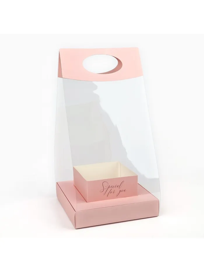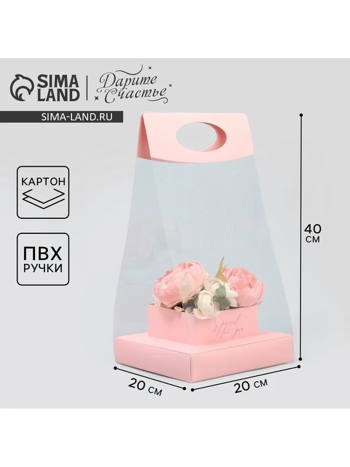 Коробка подарочная складная переноска для цветов, упаковка, «Персик», 20 x 20 x 4 см — Характеристики