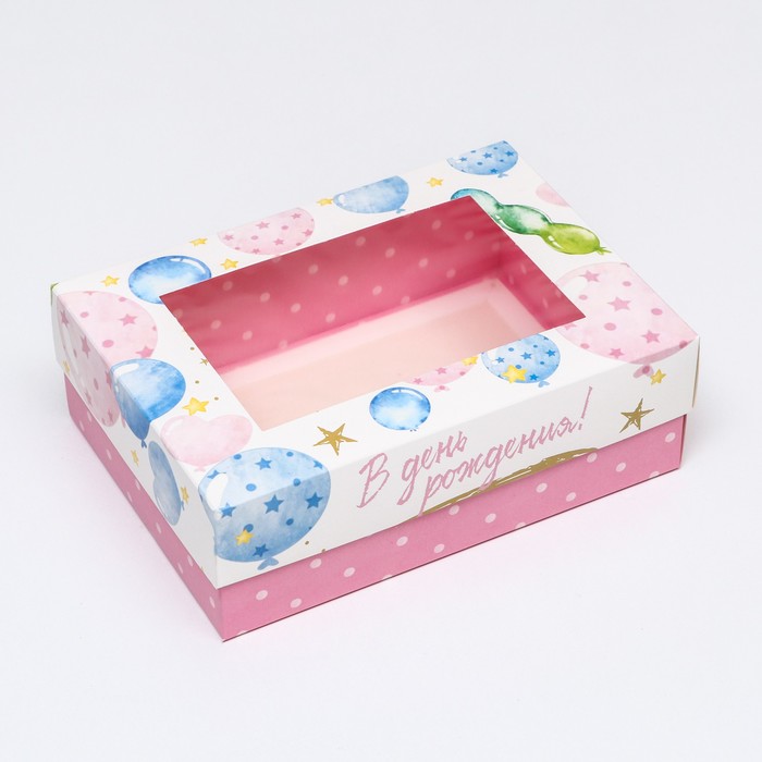 Коробка подарочная складная, с окном «Шары в день рождения» 21×15×7 см — Характеристики