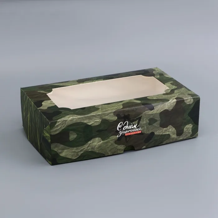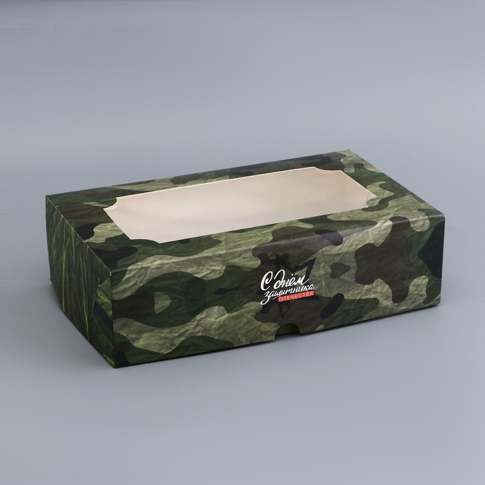 Коробка подарочная складная с окном, упаковка, «С Днем защитника Отечества», 25×15×7 см — Характеристики