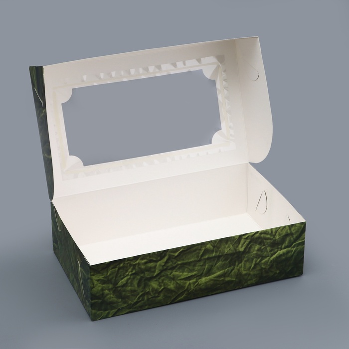 - Размер коробки составляет 25х15х7 см, что позволяет разместить внутри разнообразные кондитерские изделия: от небольших шоколадок до крупных конфет и даже пирожных.