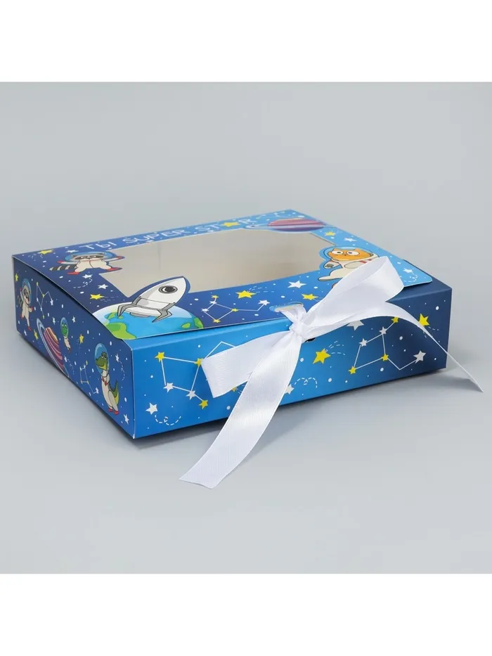 Коробка подарочная складная с пластиковым окном, упаковка, «Космос», 20 х 18 х 5 см — Характеристики