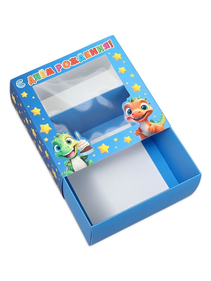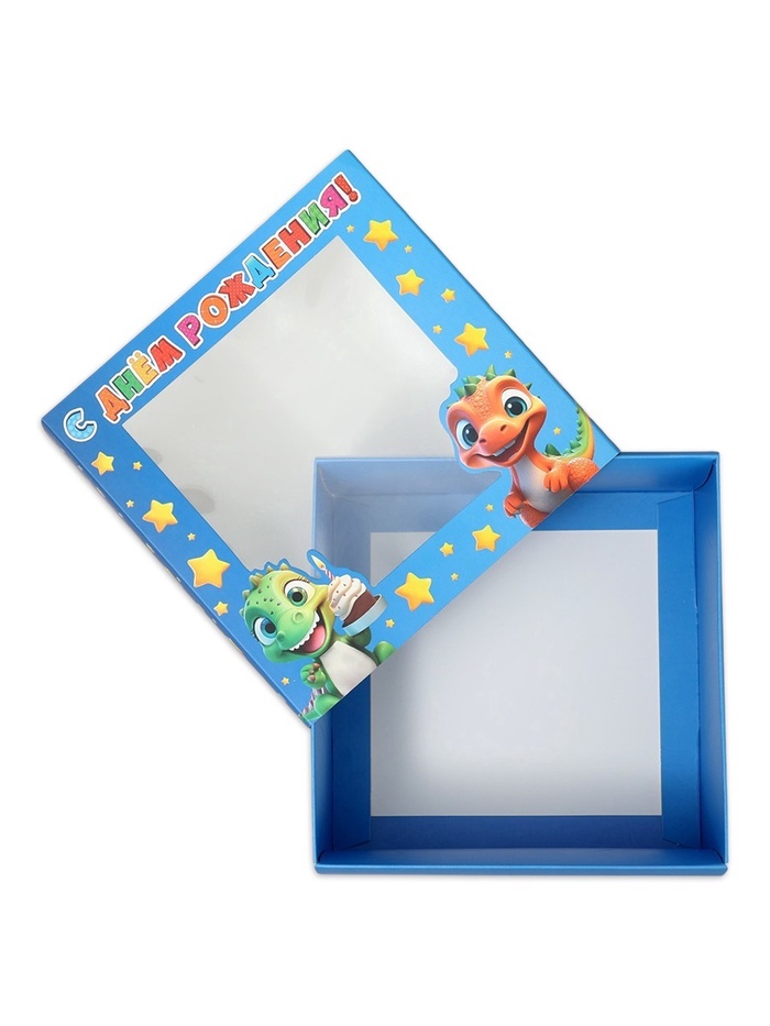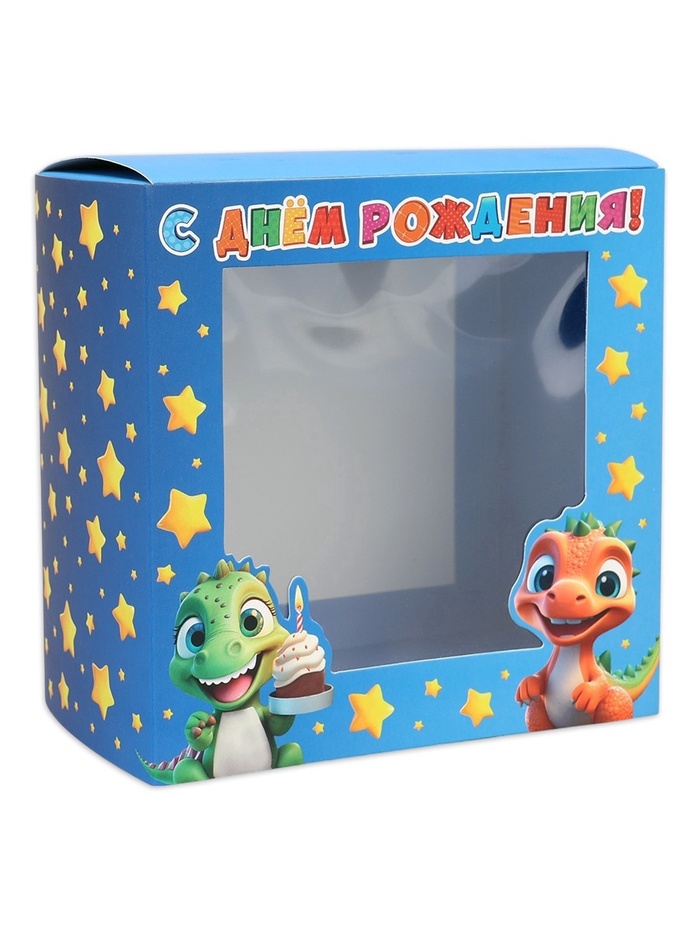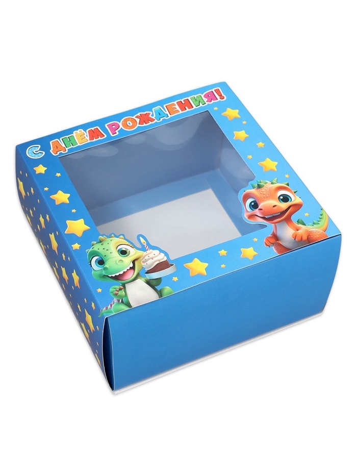 Коробка подарочная складная с пластиковым окном, упаковка, «Милые динозаврики», 14 х 14 х 8 см — Характеристики