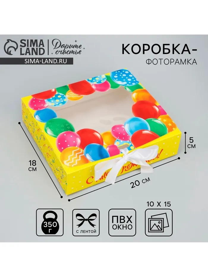 Коробка подарочная складная с пластиковым окном, упаковка, «С Днём рождения!», 20 х 18 х 5 см — Характеристики