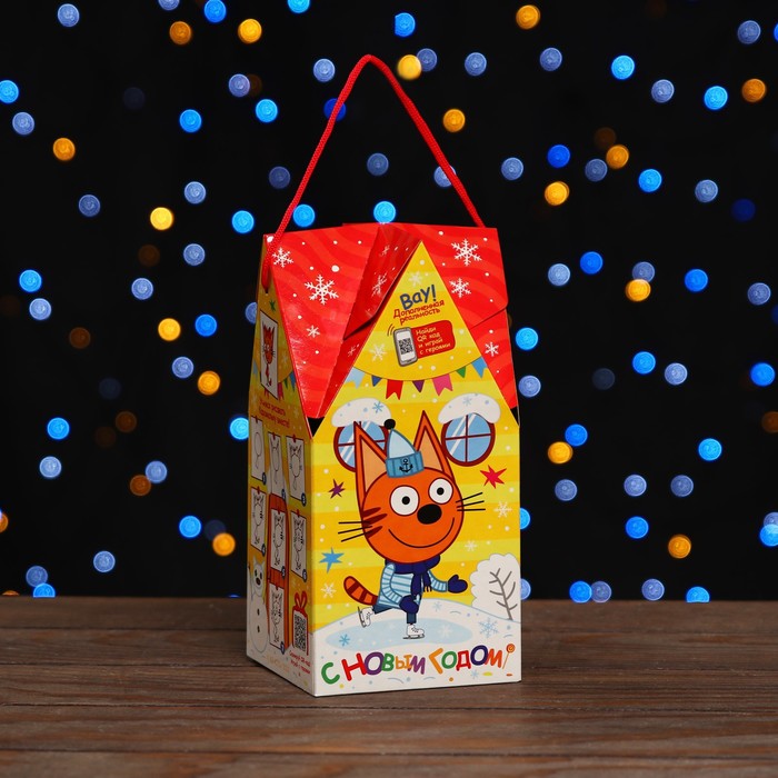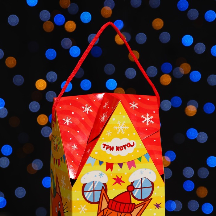 Коробка подарочная складная «Три кота» 10.5×10.5×21.5 см