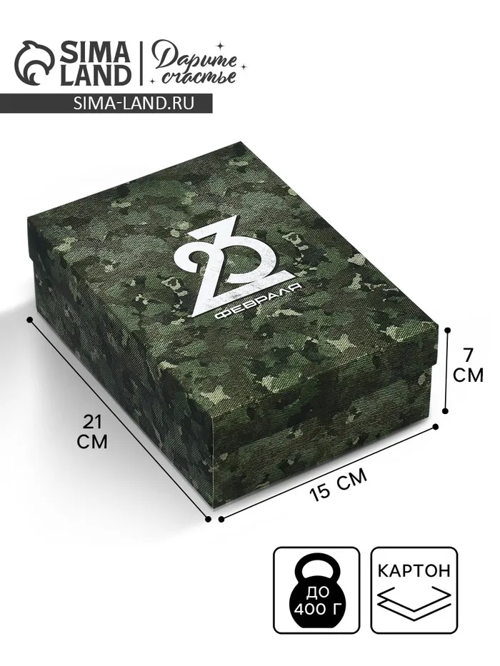 Коробка подарочная складная, упаковка, «23 февраля», 21 х 15 х 7 см — Характеристики