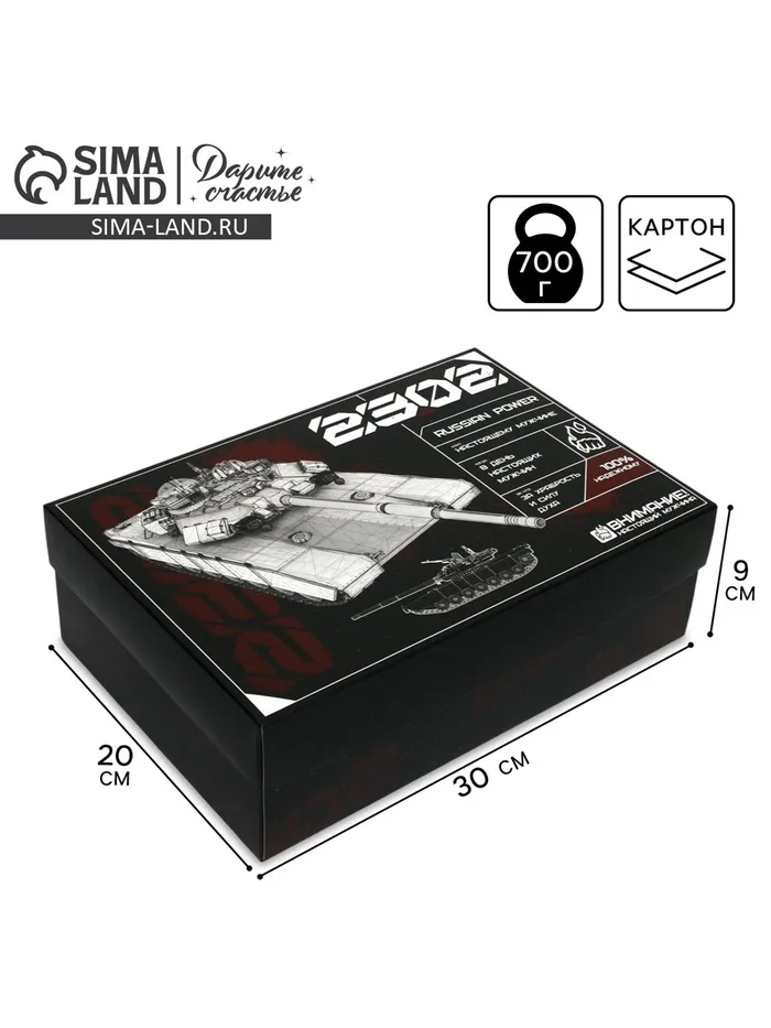 Коробка подарочная складная, упаковка, «23 февраля, танк», 30 х 20 х 9 см — Характеристики
