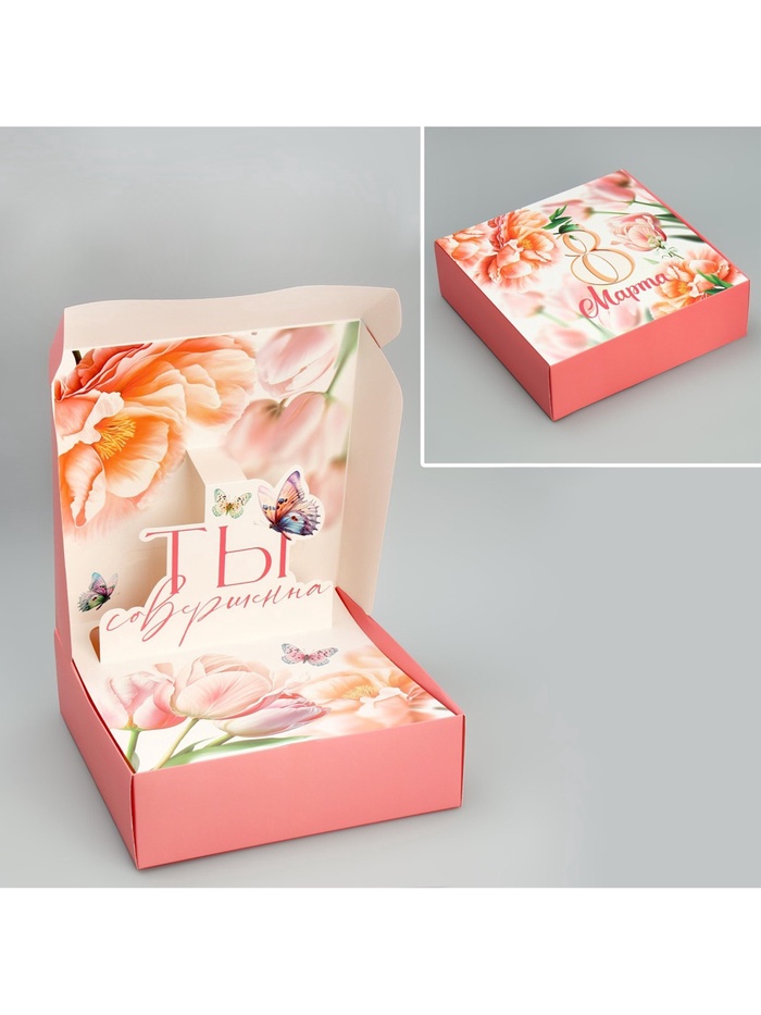 Коробка подарочная складная, упаковка, «8 марта», 26 х 26 х 8 см — Характеристики