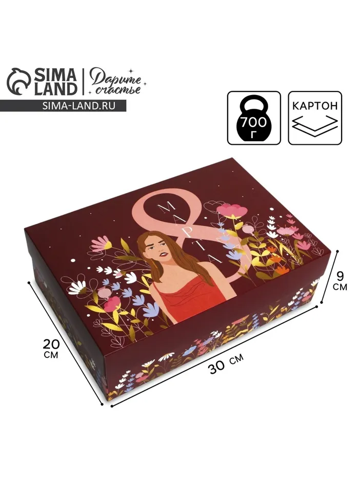 Коробка подарочная складная, упаковка, «8 марта, girl», 30 х 20 х 9 см — Характеристики