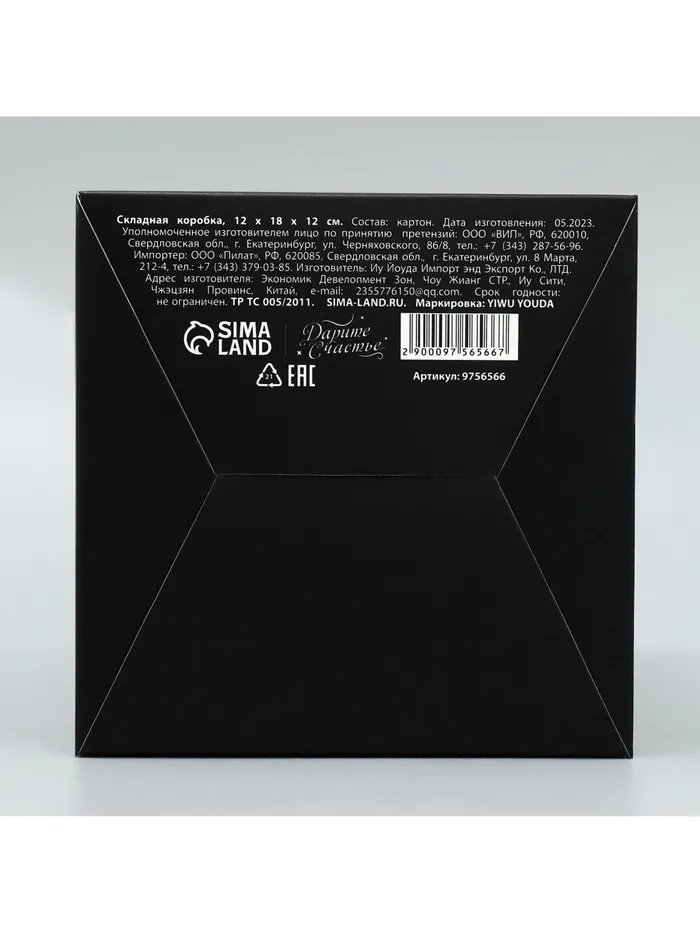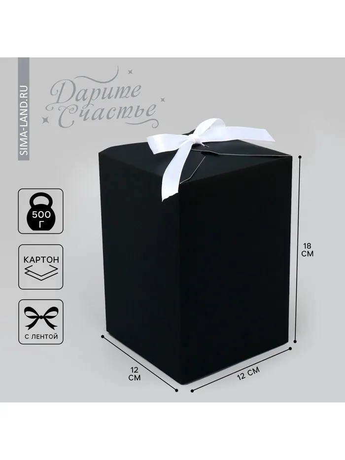 Коробка подарочная складная, упаковка, «Черная», 12 х 18 х 12 см — Характеристики