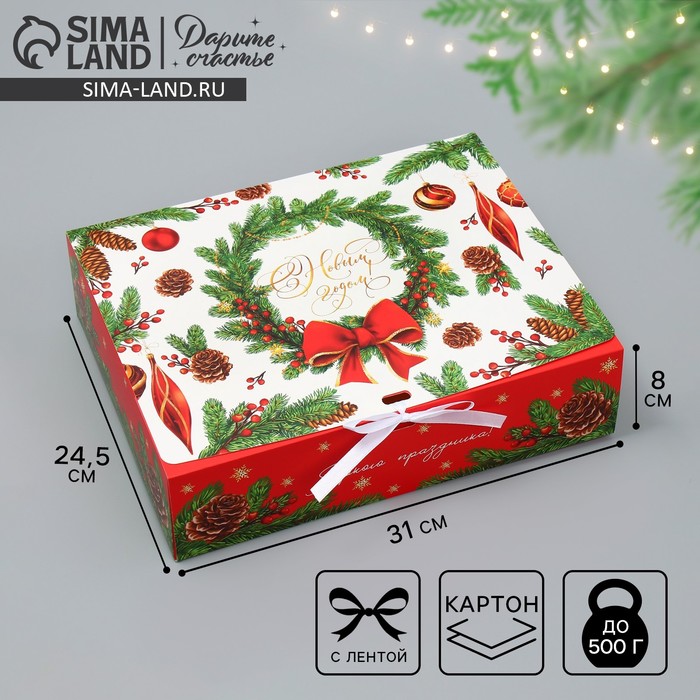 Особенностью данной коробки является наличие атласной лента.