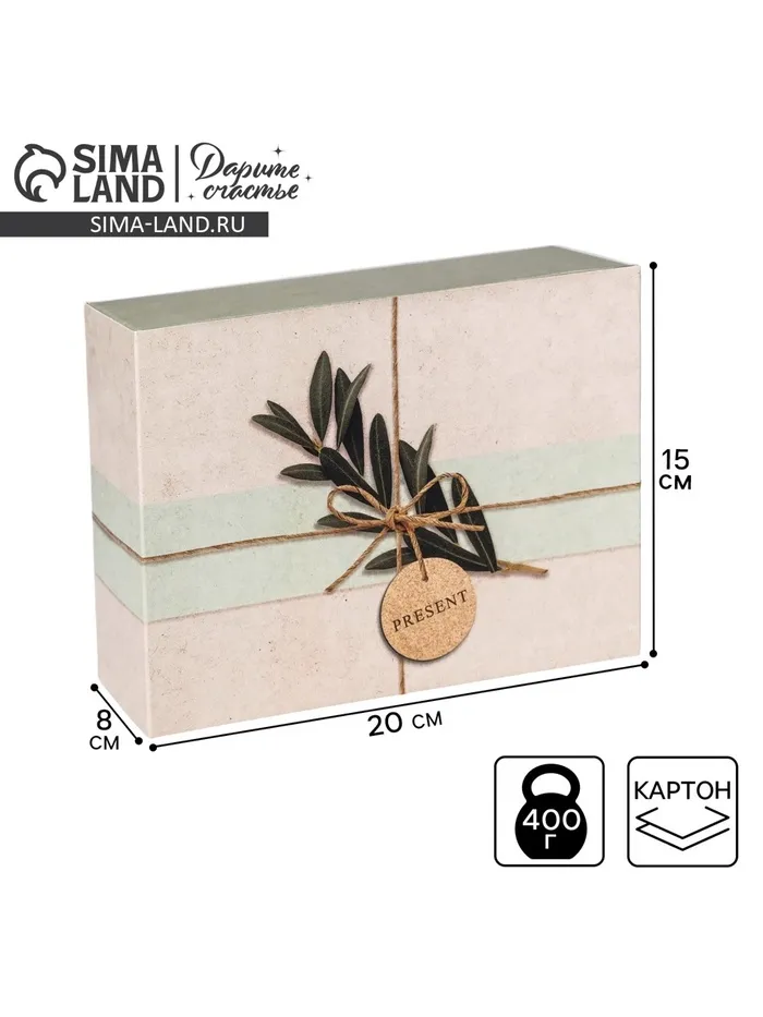 Коробка подарочная складная, упаковка, «Эко стиль», 20 х 15 х 8 см — Характеристики
