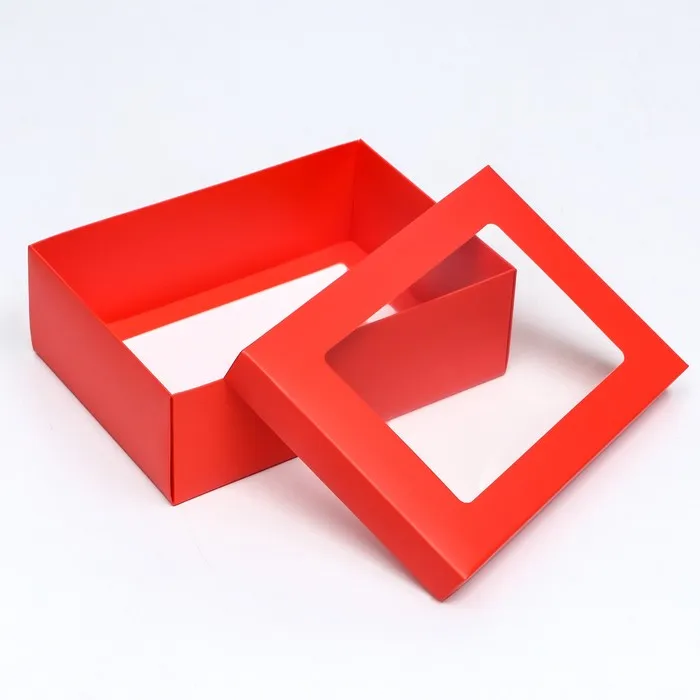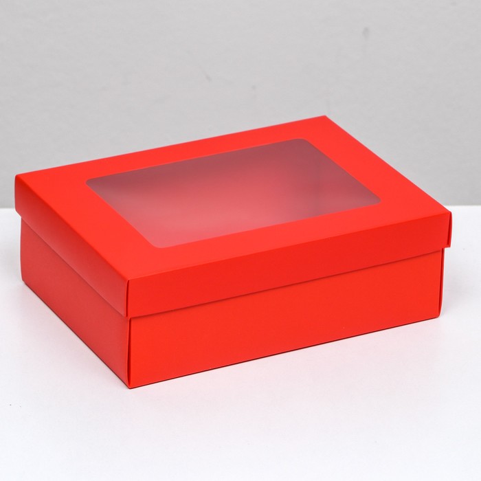 Коробка подарочная складная, упаковка, «Красная», с окном, 21 х 15 х 7 см — Характеристики