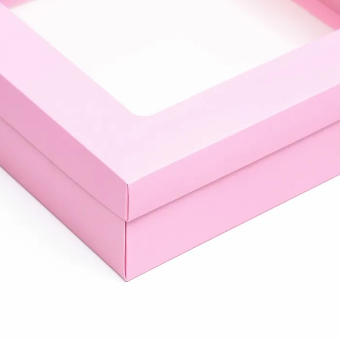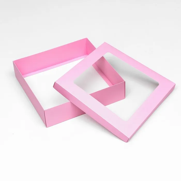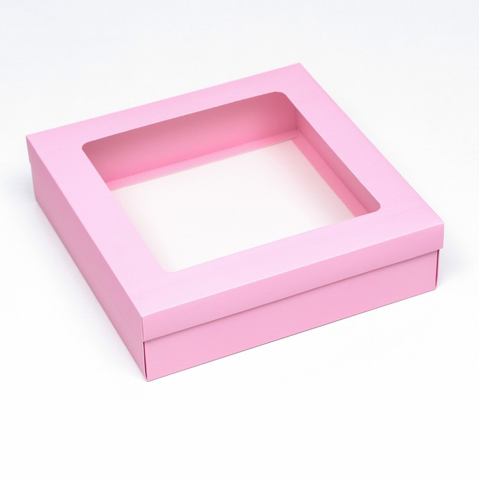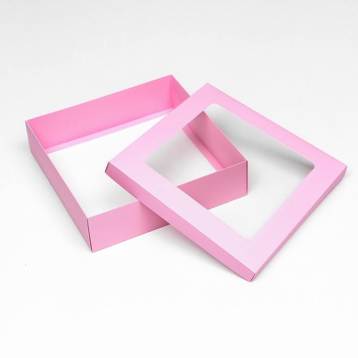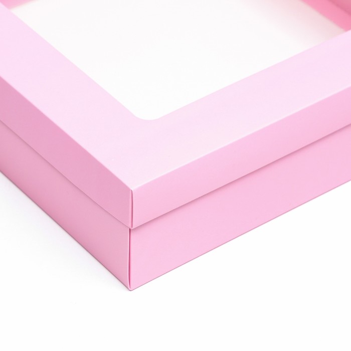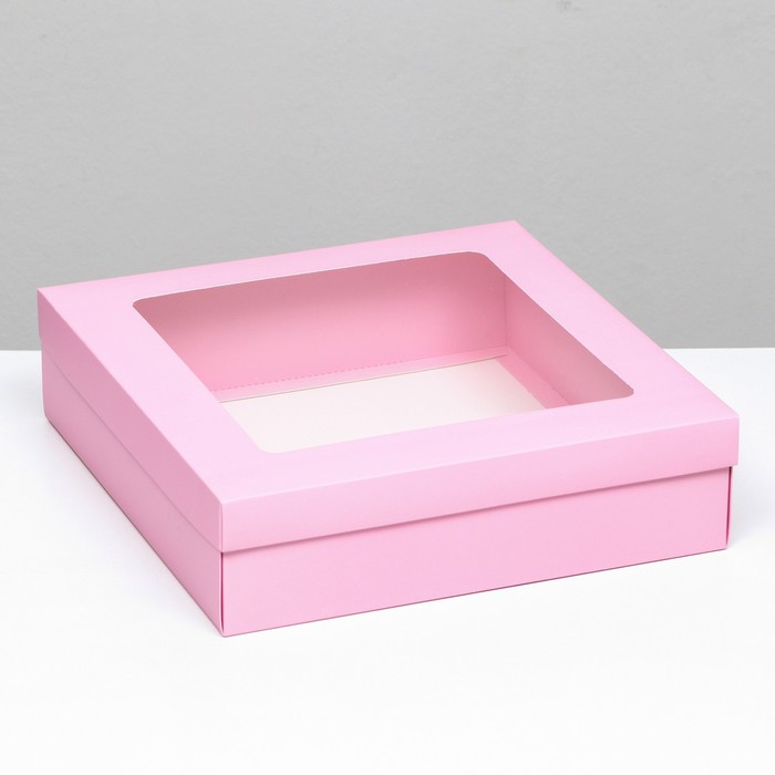 Коробка подарочная складная, упаковка, крышка - дно, розовая, с окном 30×30×8 см — Характеристики