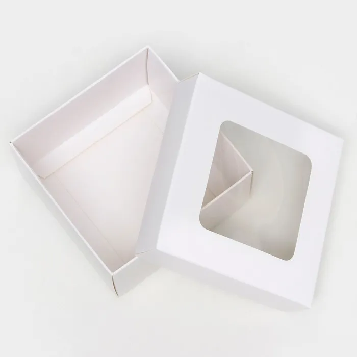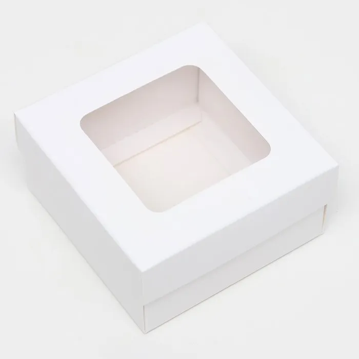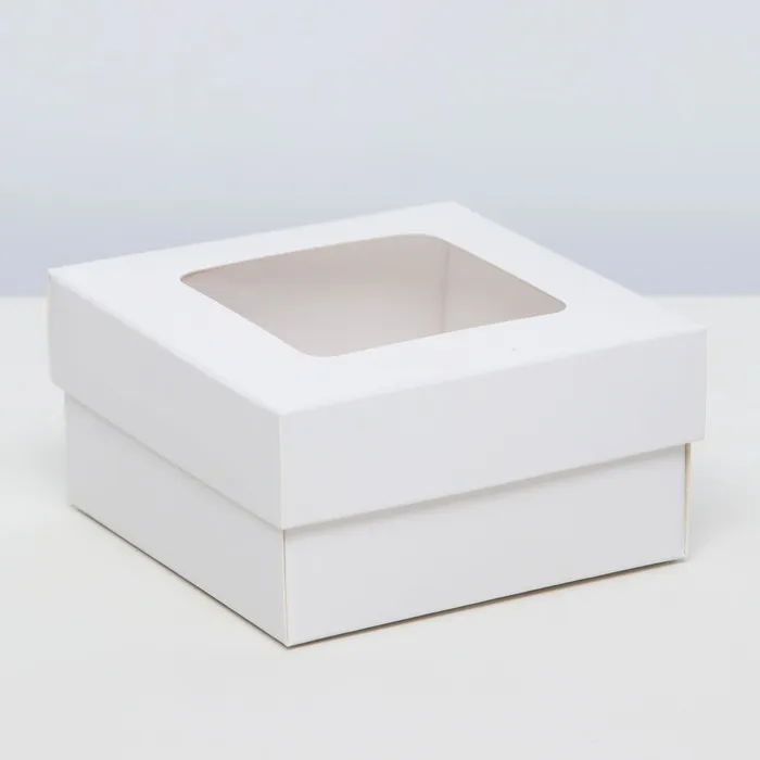 Коробка складная, крышка-дно,с окном, белая, 10 х 10 х 5 см
