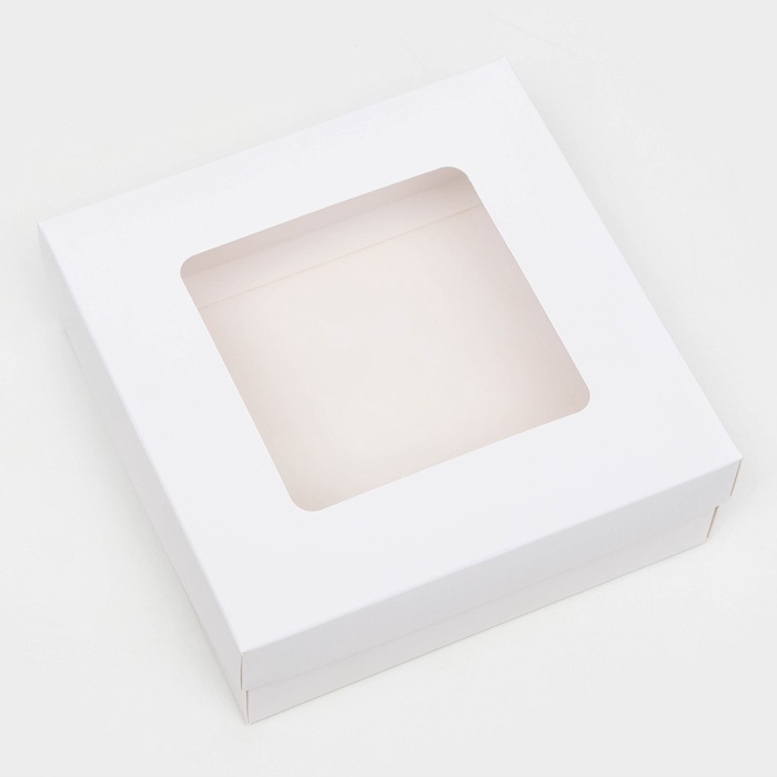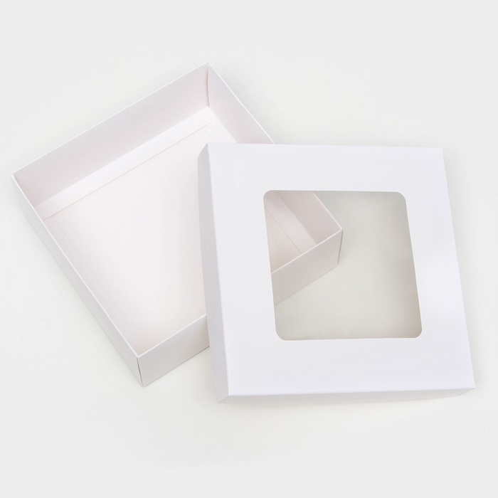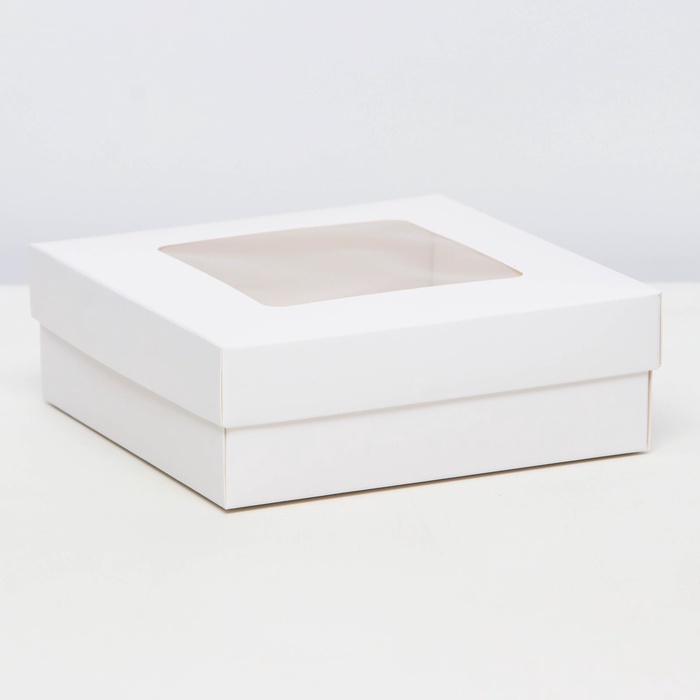 Коробка складная, крышка-дно,с окном, белая, 15 х 15 х 5 см
