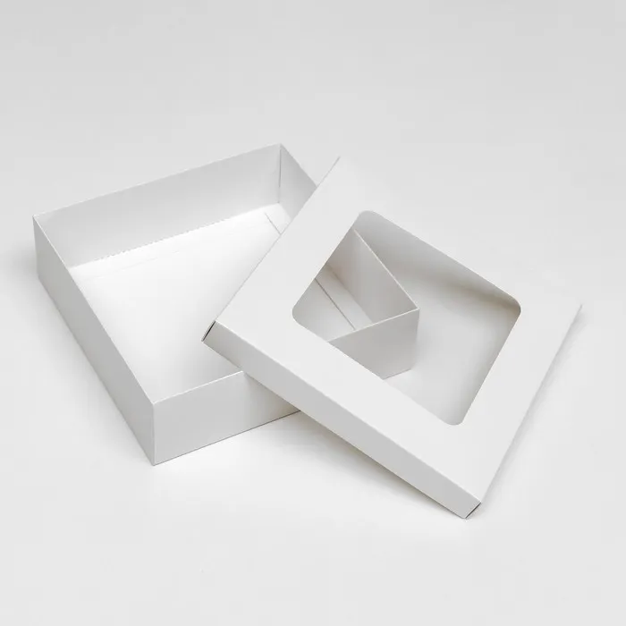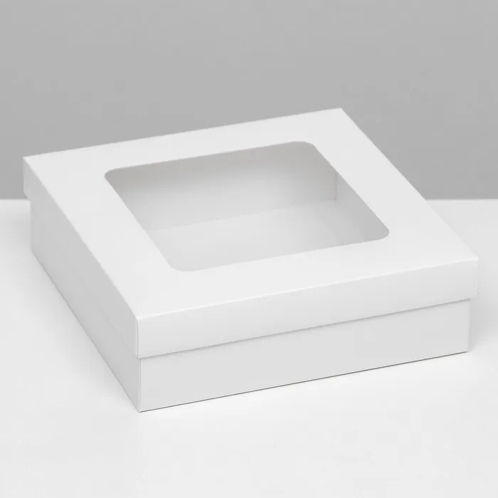 Коробка подарочная складная, упаковка, крышка-дно, с окном, белая, 20 х 20 х 6 см — Характеристики