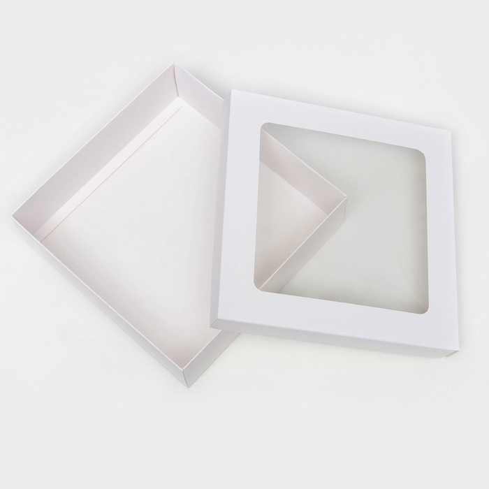 Коробка складная, крышка-дно,с окном, белая, 23 х 23 х 6,5 см