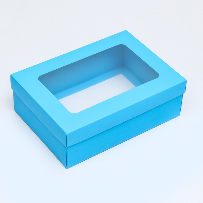 Коробка подарочная складная, упаковка, крышка - дно, с окном, бирюзовая, 24×17×8 см — Характеристики