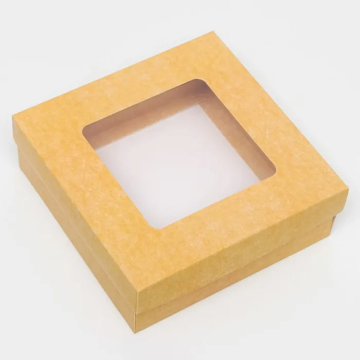 Коробка подарочная складная, упаковка, крышка - дно, с окном, крафт, 15×15×5 см — Характеристики