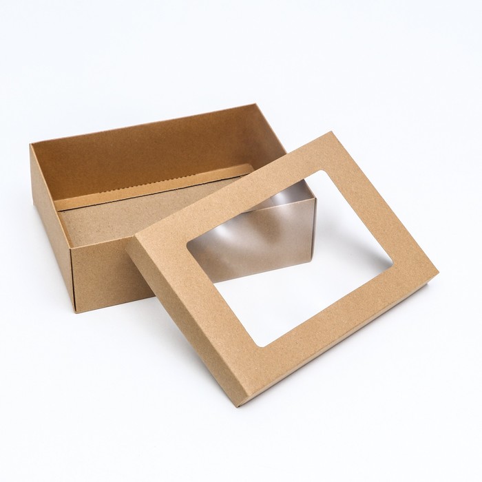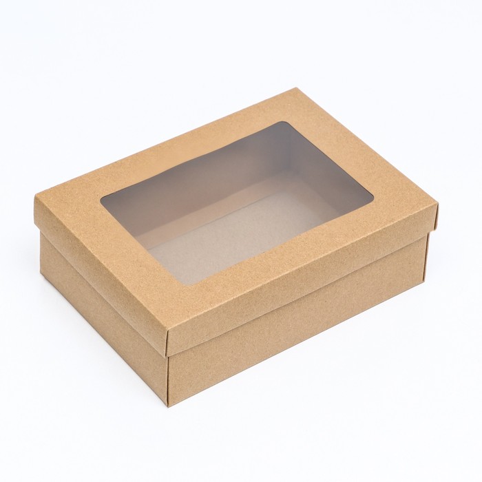 Коробка подарочная складная, упаковка, крышка - дно, с окном, крафт, 21×15×7 см — Характеристики