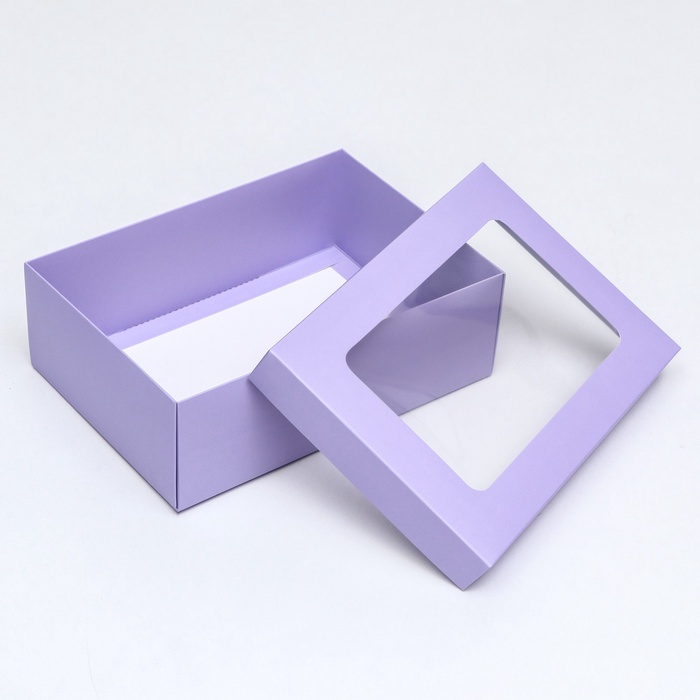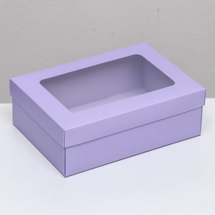 Коробка подарочная складная, упаковка, крышка-дно, с окном, сиреневая, 24×17×8 см — Характеристики