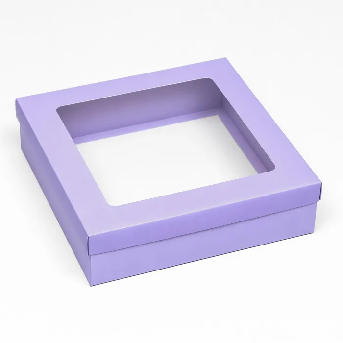 Коробка подарочная складная, упаковка, крышка-дно, сиреневая, с окном 30 х 30 х 8 см — Характеристики