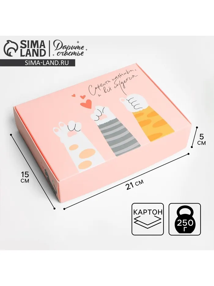 Коробка подарочная складная, упаковка, «Лапки», 21 х 15 х 5 см — Характеристики