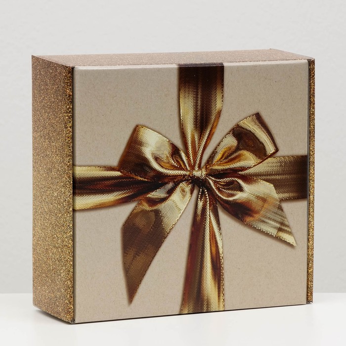 Коробка подарочная самосборная «Бант», золотая, 23×23×8 см