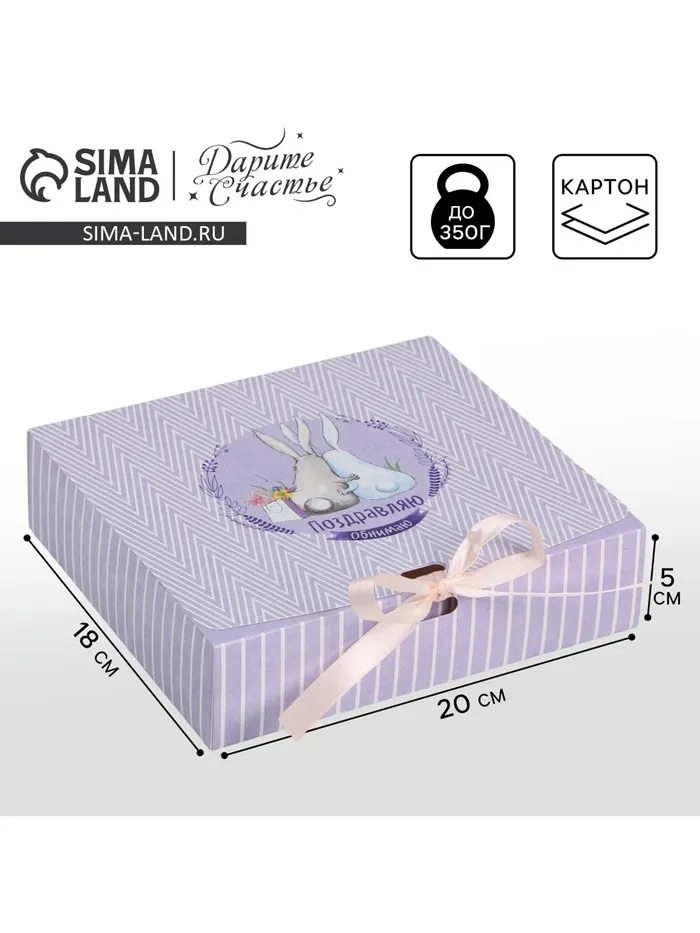 Коробка подарочная складная, упаковка, «Поздравляю», 20 х 18 х 5 см, БЕЗ ЛЕНТЫ — Характеристики