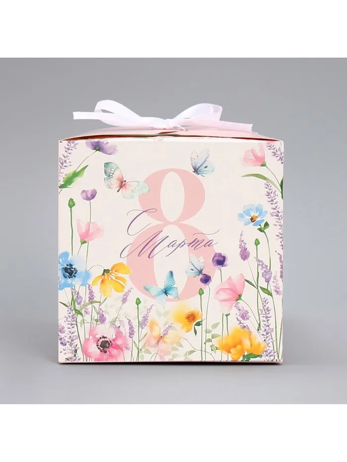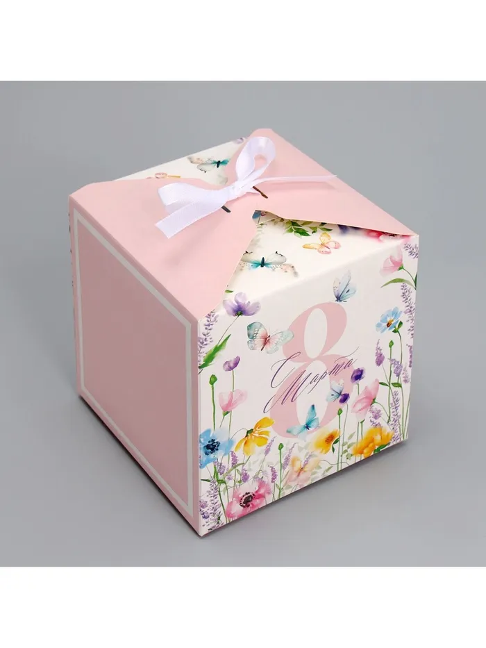 Коробка подарочная складная, упаковка, «С 8 Марта, нежные цветы», 12 х 12 х 12 см — Характеристики
