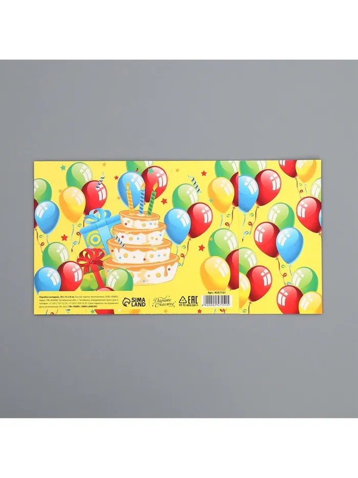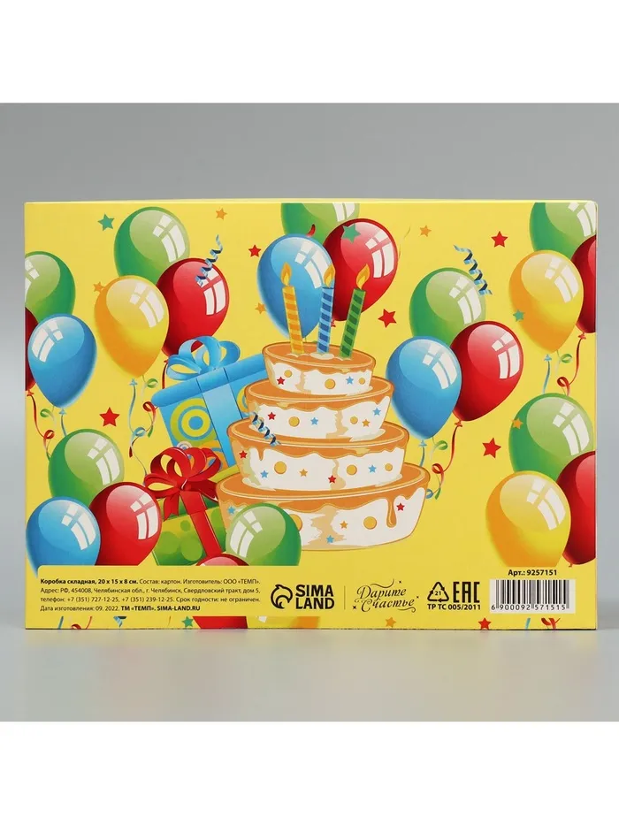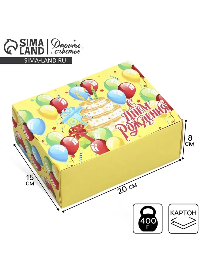 Коробка подарочная складная, упаковка, «С днем рождения», 20 х 15 х 8 см — Характеристики