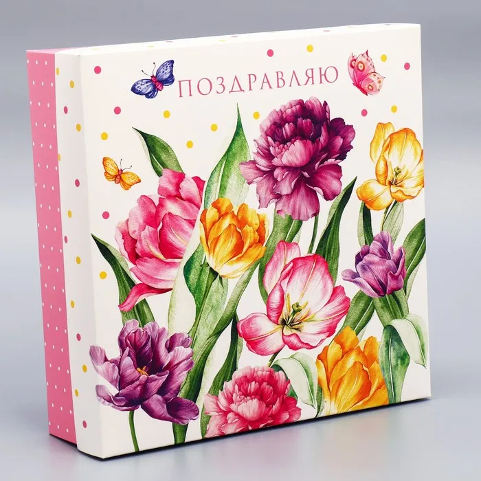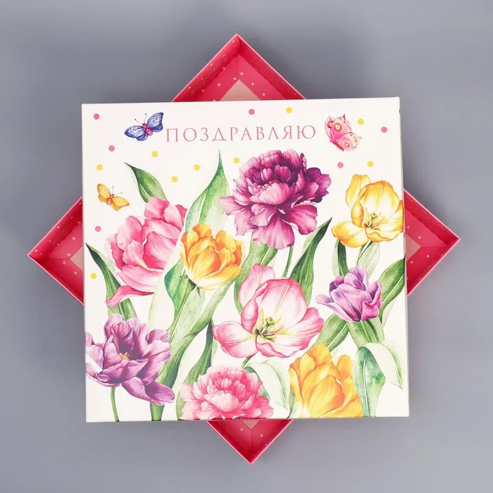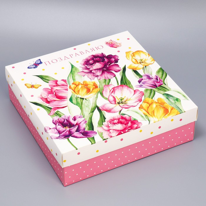 Коробка подарочная складная, упаковка, «Цветы», 26 х 26 х 8 см — Характеристики