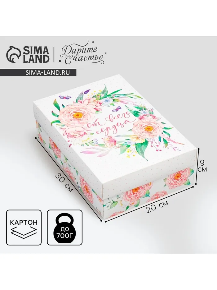 Коробка подарочная складная, упаковка, «Цветы», 30 х 20 х 9 см — Характеристики