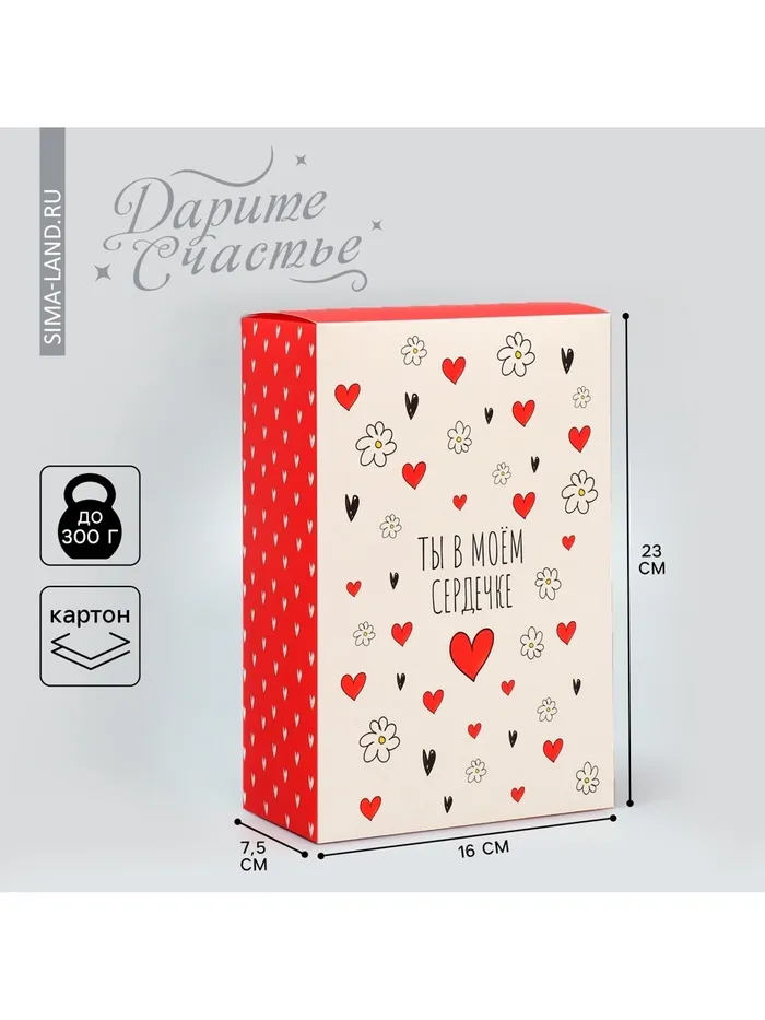 Коробка подарочная складная, упаковка, «Ты в моём сердечке», 16 х 23 х 7.5 см — Характеристики
