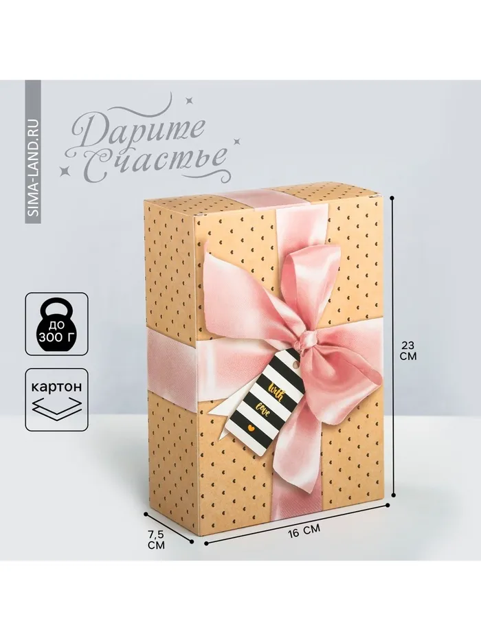 Коробка подарочная складная, упаковка, With love, 16 х 23 х 7.5 см — Характеристики