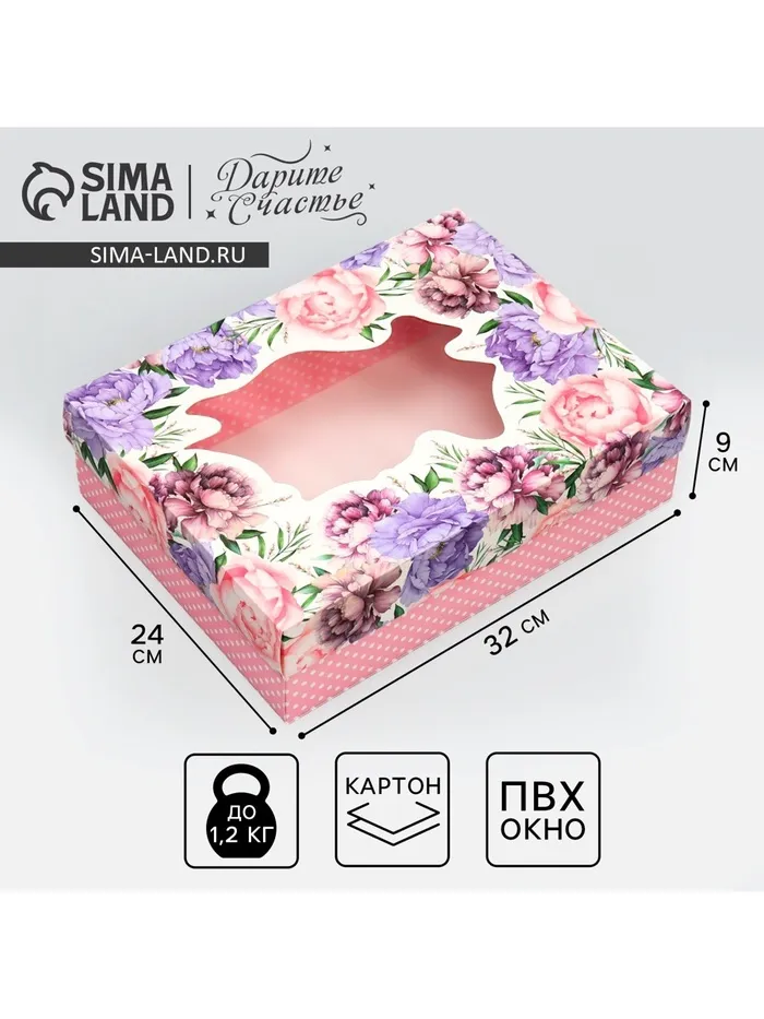 Коробка подарочная, упаковка, «Пионы», 32 х 24 х 9 см — Характеристики