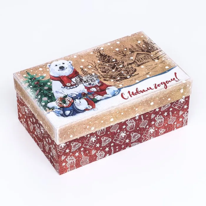 Эта прекрасная новогодняя коробка является идеальным выбором для упаковки ваших праздничных подарков. Она обладает не только великолепным внешним видом, но и практичностью, предоставляя удобное пространство для разнообразных сюрпризов.